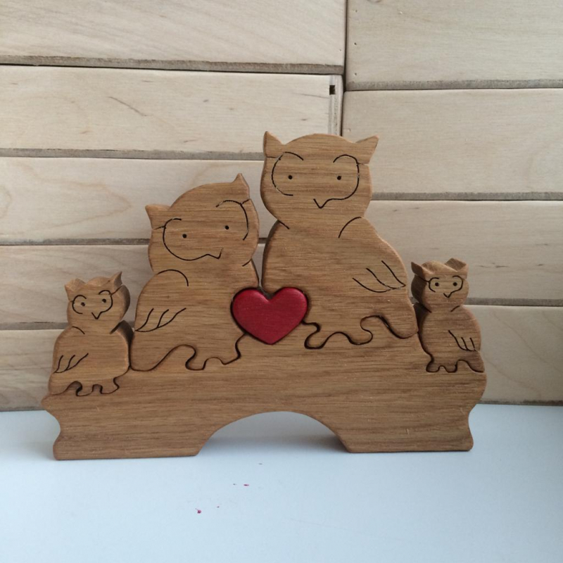 Другие фигурки / Сувенирные фигурки из дерева "Совы с двумя совятами и сердечком"